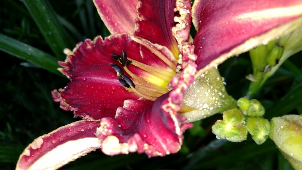 Since I have no studio space and live in a construction camp-style environment I do write down poetry type things. I will include a couple along with a couple of daylily pictures that perhaps you will find good enough for your online art challenge.
